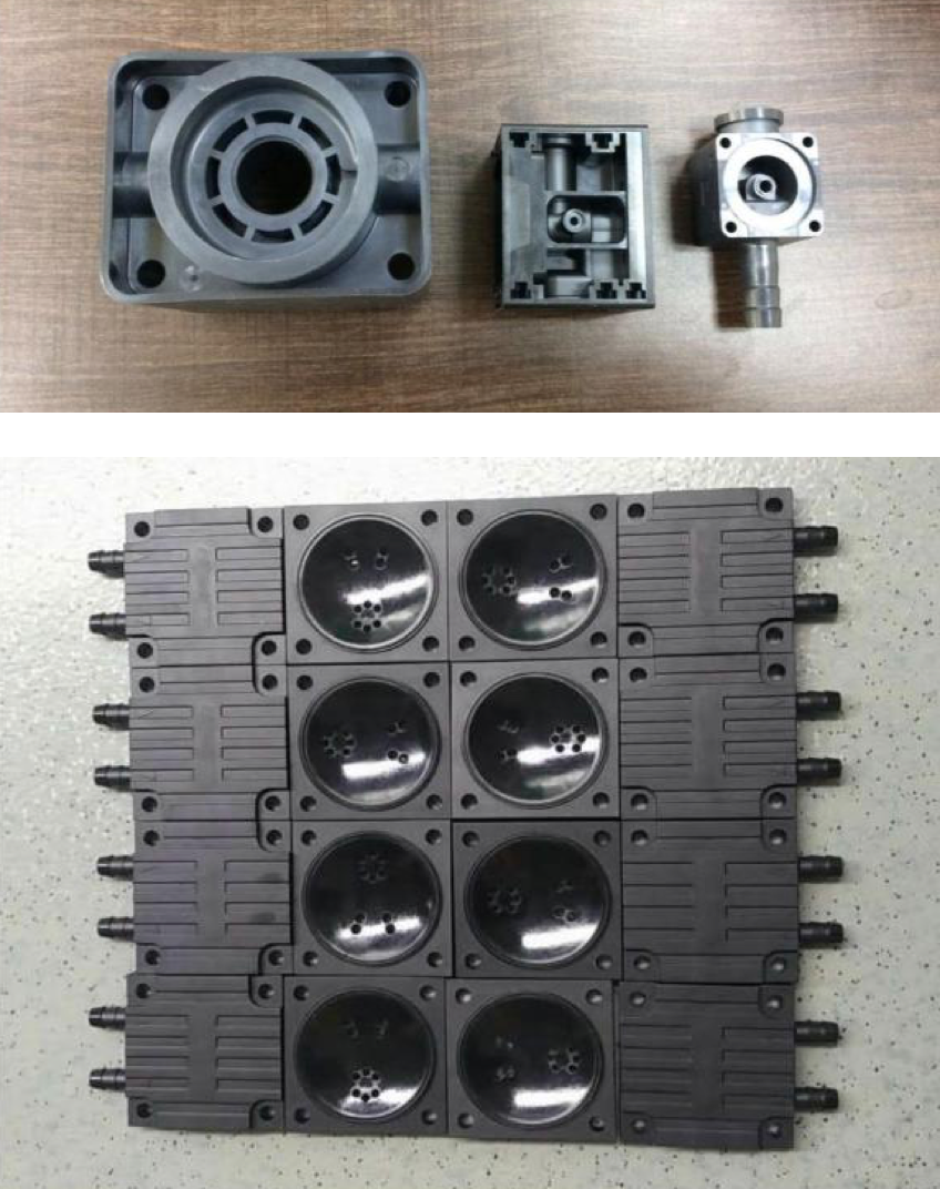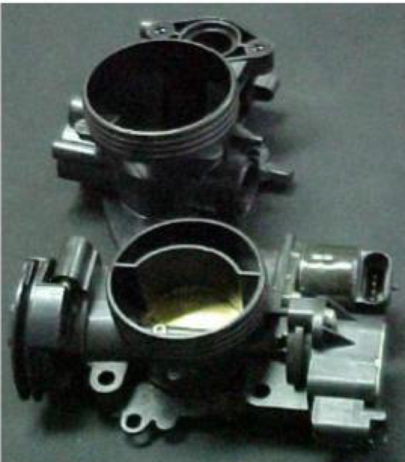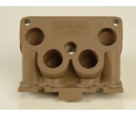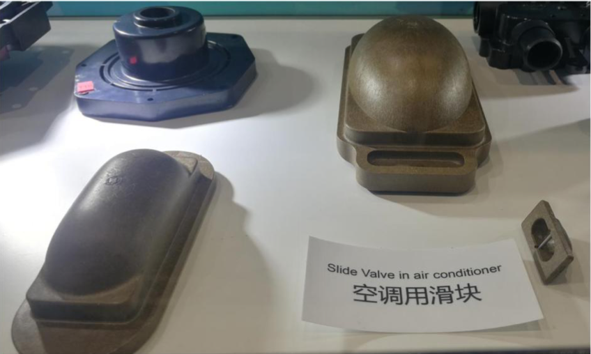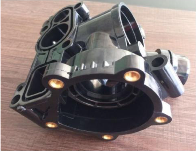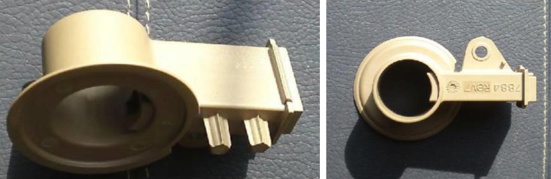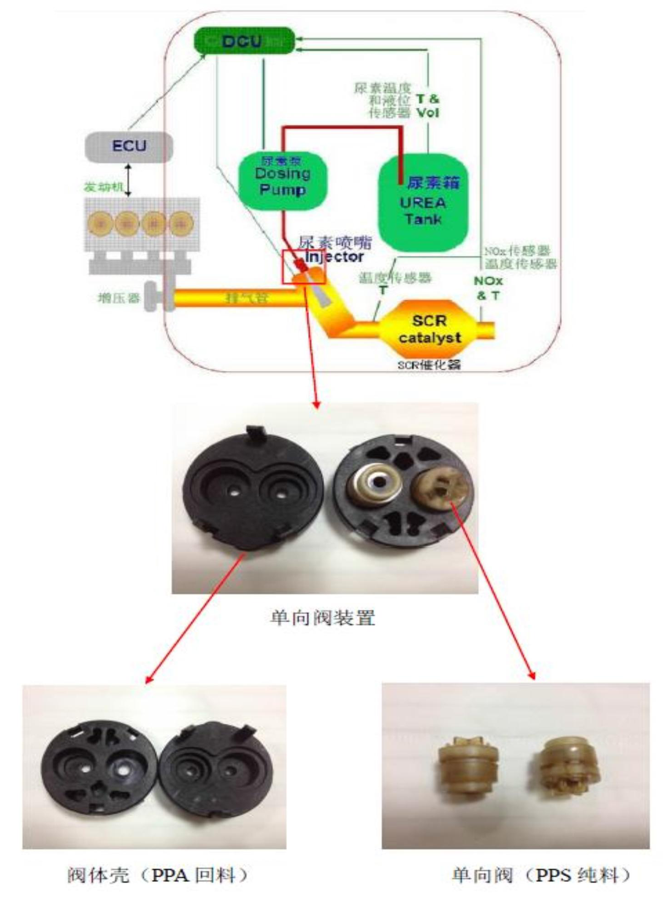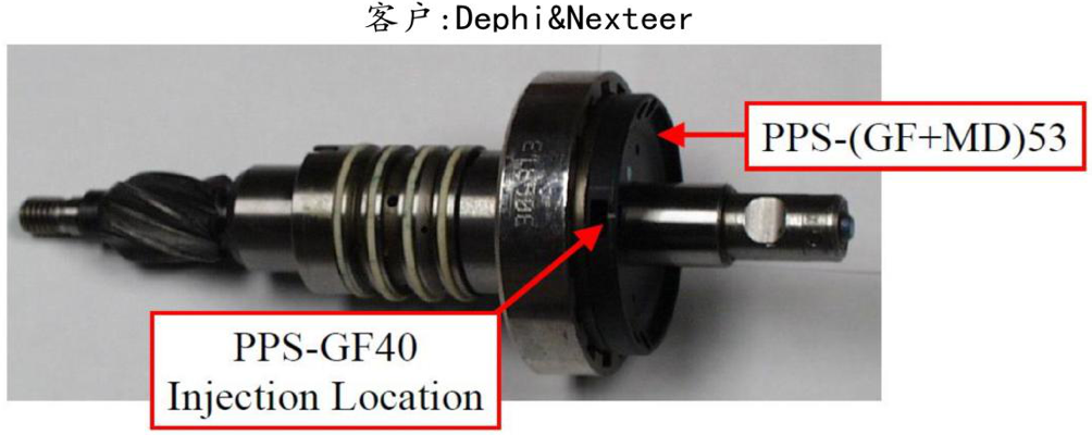 客户生产用在国外重卡汽车尾气处理系统中的单向阀产品,由于单项阀控制化学物质喷出与汽车尾气反应,故要求材料具有耐化性。客户之前测试日本产40%玻纤PPS,送样100PCS给德国终 端客户测试,有10一15PCS出现漏 气的情况。后测试不加纤PPS,给终端客户测试后没有出现漏气问 题,但是出现缩水和生产中不好顶出的问题,故向客户推荐测试玻纤含量较少的Z230 BK测试。产品如下图所示: