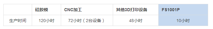 与传统手工艺对比――生产加工一个车载空调HVAC罩壳,1台FS1001P修建時间仅10钟头,CNC必须2台机器设备生产加工三天,硅橡胶模加工工艺则必须五天。此外该类厚壁件由CNC加工时,不合格率较高,三d打印能降低制成品缺点及不合格率。