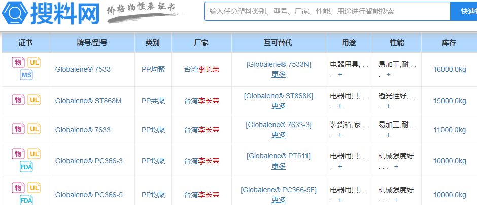 台湾李长荣 PP塑胶原料实时报价_物性表参数
