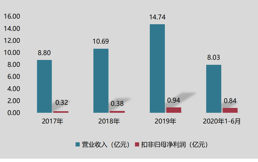 2017年至2020年1-6月公司营收及扣非归母净利润