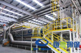 该生产线连续进料、连续出料;自动化程度高;生产过程全部在密闭的设备中进行;加热系统采用烟气循环利用技术,降低燃料消耗,减少烟气排放量,符合节能减排的国家政策;烟气经过净化后达标排放。该生产线实现了安全、环保、低耗、高效、大处理量的规模化废塑料裂解工业连续化生产。
