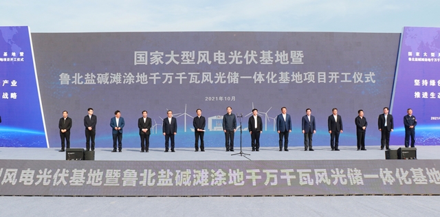 10月28日,国家大型风电光伏基地暨鲁北盐碱滩涂地千万千瓦风光储一体化基地,首批总装机200万千瓦集中式光伏发电项目开工仪式在山东海化集团300MW光伏发电项目现场举行。据悉,该基地是《生物多样性公约》第十五次缔约方大会(COP15)领导人峰会上,宣布的近期开工建设的首期1亿千瓦大型风电光伏基地项目之一。