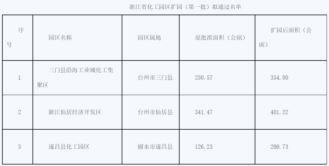 公示!浙江省化工园区扩园(第一批)拟通过名单
