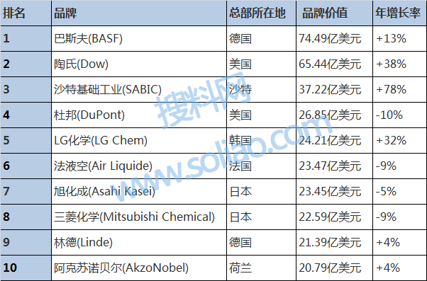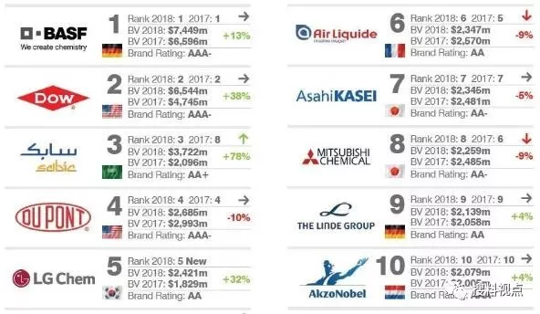 英国品牌评估机构Brand Finance发布“2018全球最有价值的10大化学品牌”排行榜