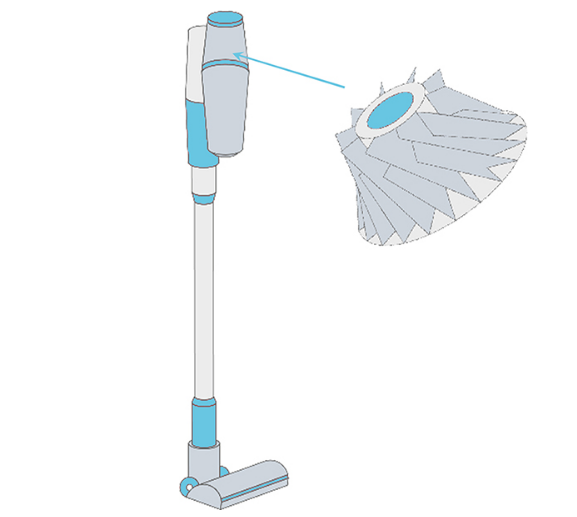 对比金属叶轮,减轻了重量,优化散热管理,延长电池续航时间并提高吸尘工作效率。