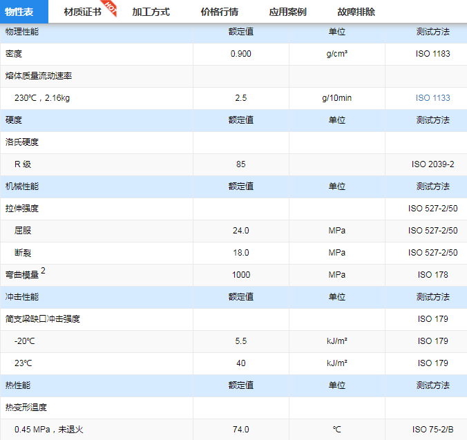 台湾台塑 PP共聚 YUNGSOX® PP 3015塑料物性表下载/价格走势图
