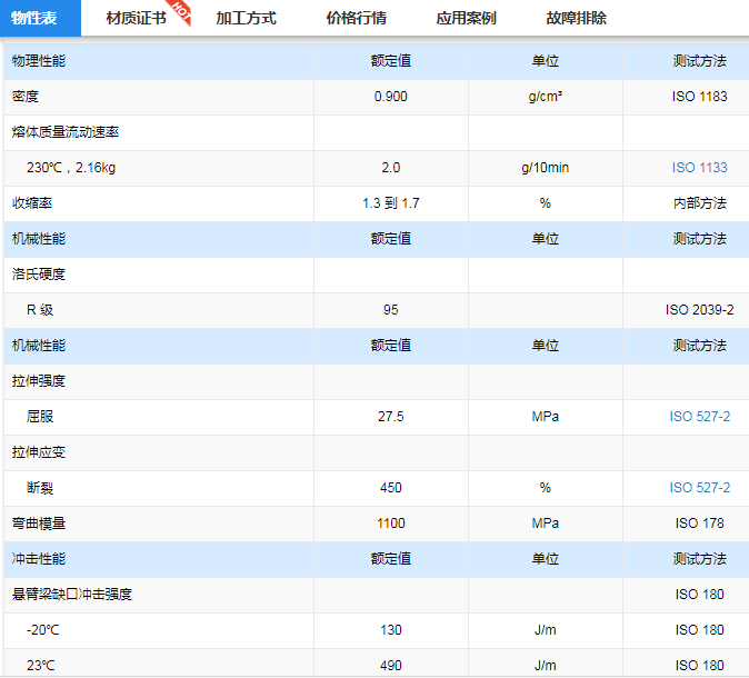 台湾台塑 PP共聚 YUNGSOX® PP 3015塑料物性表下载/价格走势图