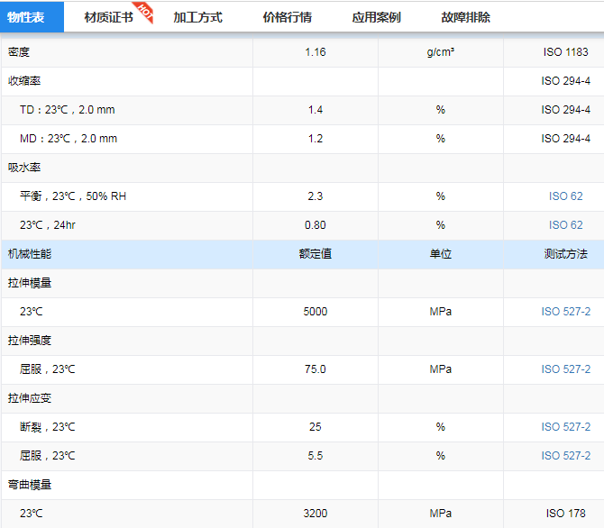 德国巴斯夫PA66 Ultramid® A3WG7塑料物性表下载/价格图走势