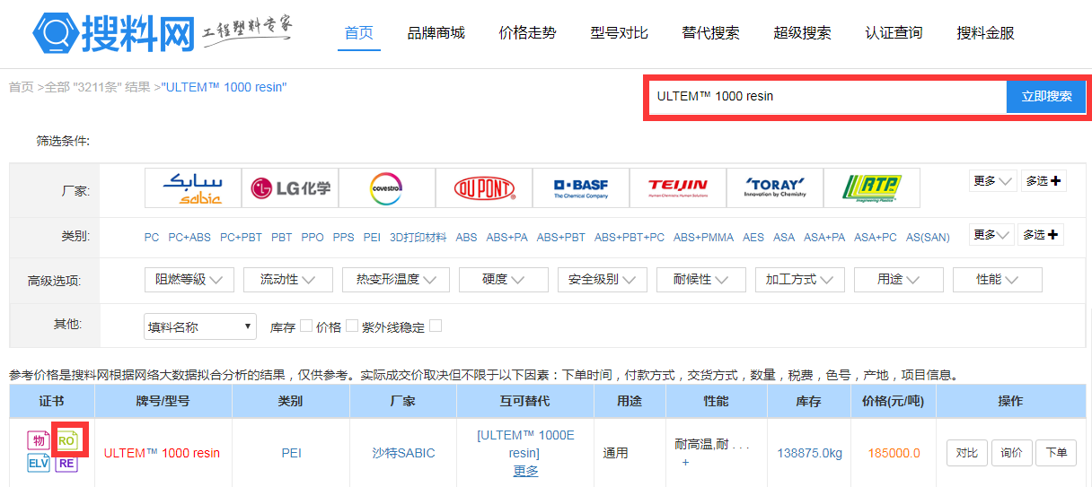 沙特沙伯基础PC LEXAN™ 500R塑料物性表下载/价格走势图