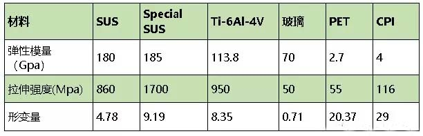 目前的屏幕基底材料以玻璃为主,但是玻璃不能弯曲折叠,因此塑料的特性成为折叠屏眼下最适宜的基底材料。荧幕基底换成薄膜后不仅基底能够折叠,还可提高屏幕的抗摔性,同时屏幕更加轻薄。以下为列举的几种主要基底材料性能对比: