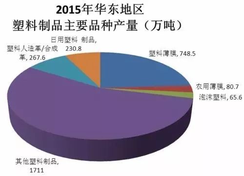 2015年华东区塑料制品关键种类生产量(万吨级)。