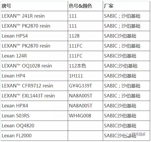 ◆搜料网(www.soliao.com)整理【聚碳酸酯PC】原产美国的常用型号如下 ▼