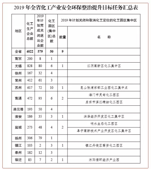 江苏计划封锁9个化工园区、封锁1431家、整治4022家化企