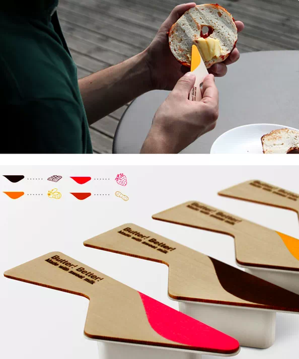 先看一则非常简单的国外亚马逊案例:我们想在面包上涂抹黄油的时候,总是会因为一时找不到合适的工具而变得很尴尬。针对此疼点,厂商把包装盒设计成了涂抹工具的样子,让人可以随时随地,快乐的在面包上加黄油。