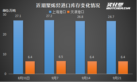 据统计,目前上海港口聚乙烯库存约为26.7万吨,天津港口聚烯烃库存约为6.4万吨,进入9月后,聚烯烃港口库存呈下降趋势。虽去库存效果缓慢,但对行情仍有一定利好。