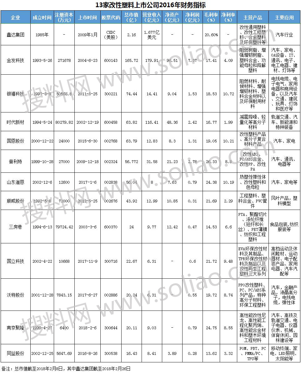 中国改性塑料钱景如何?13家上市公司为你解密!