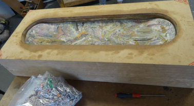两年前他逐渐试着解决收购 塑料:搜集到密度高的高压聚乙烯包装袋后,他将其剁碎并升温熔融。当溫度加至130度,塑料逐渐越来越像黏土一样有延展性和可塑性,然后他们熔在一起容积也随着减少。这时另加不断工作压力,熔融的塑料被压模成一个牢靠的物件,在这个全过程中,汽泡被清除,塑料逐渐变为一种新型材料,具备难以置信的高韧性,而且表面光洁,具备天然大理石一样的颜色。