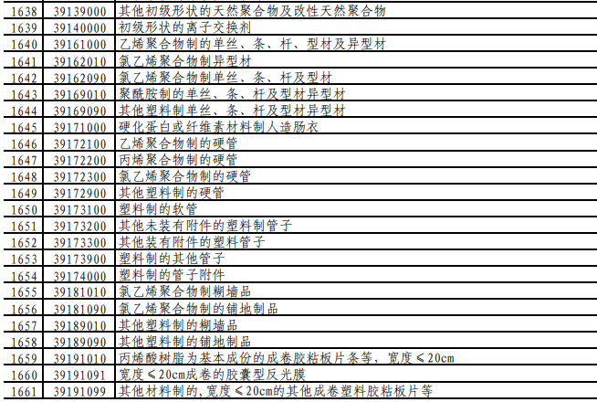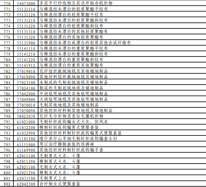 有关塑料行业的加征10%关税的商品集中零售上,从上图不难看出服装行业、化纤制品基本涵盖。