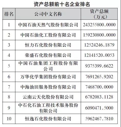 和去年资产总额排名前十的企业对比,不难发现,资产总额前十名企业的名单,发生了变化。恒力石化股份有限公司和恒逸石化股份有限公司,是2018年度新进入资产总额排名前十名单排名的企业。