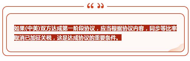 商务部:中美达成协议的重要条件是同步等比率取消已加征关税。