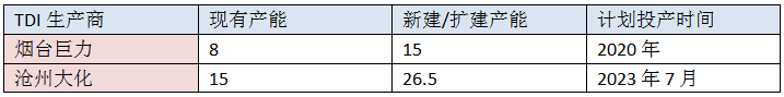 2019年聚氨酯原料扩产方案合集(MDI,TDI)