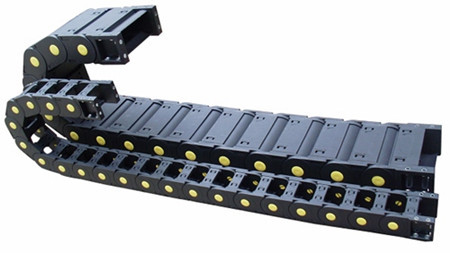 拖链按照结构可分为桥式塑料拖链与全封闭塑料拖链。随着人类科技的进步,高性能塑料制成的拖链正在征服越来越多的工业领域,并逐渐取代金属产品。在2016BAUMA上,igus(易格斯)展出了世界上最大的塑料拖链——E4.350,它们具有重量轻、免维护、高强度的优点,在需要引导大电缆和软管的领域更是如鱼得水,如船坞或钻井平台。