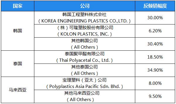 韩、泰、马产地共聚POM昨起征收反倾销税