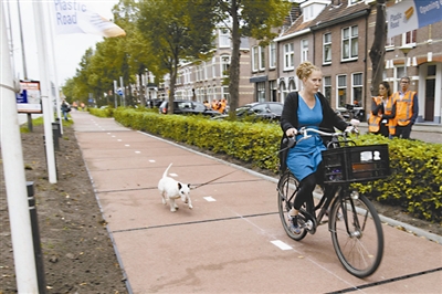 荷兰用可再生塑料建成世界首条环保 自行车道