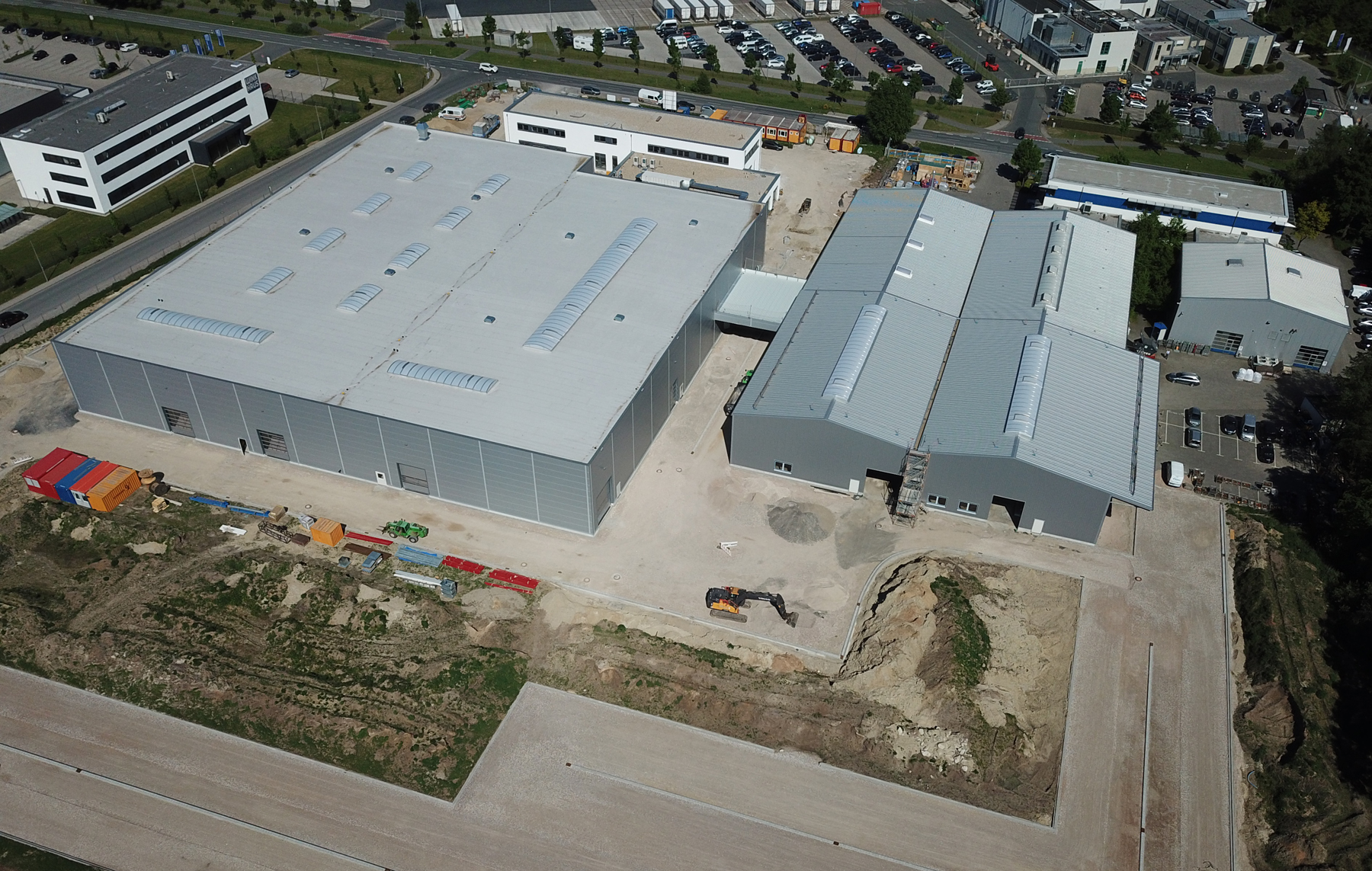 图片说明 :从这张航拍图可以看出,Nordson BKG GmbH 在明斯特的工厂得到了大范围的扩建。位于中心左侧的大型灰色建筑物是 BKG® 造粒机和熔体输送系统的全新制造中心。中心右侧的灰色建筑物还包含制造业务,其四个部分的前面两个都是全新的。这两座大型建筑物后方的白色建筑物是办公室结构,左边也是一座新建的建筑物。最右侧的小型灰色建筑物是现有的建筑。