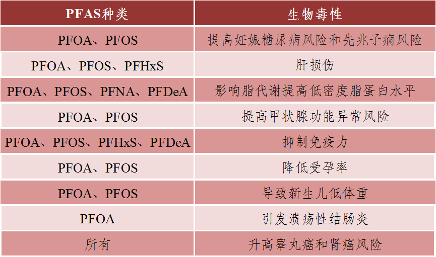 目前PFAS已被证明与血液蛋白相互作用,并被怀疑会引起包括癌症在内的一系列病理反应。
