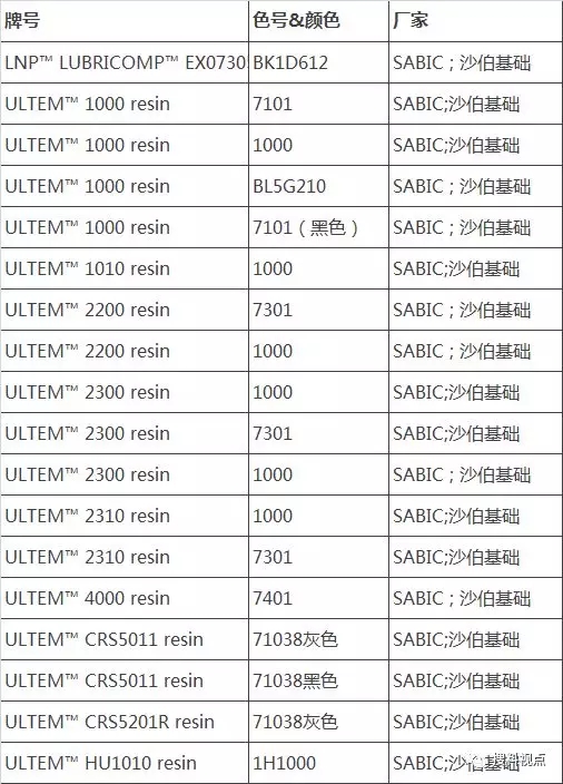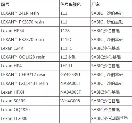 整理【聚碳酸酯PC】原产美国的常用型号如下 ▼