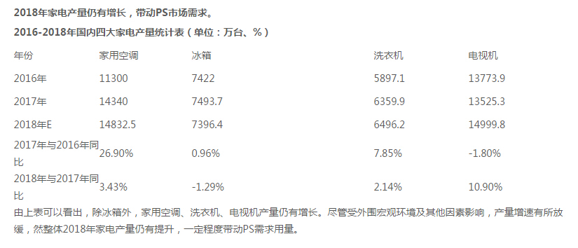 外围宏观环境不佳,下游家电产销增速放缓,而2018年PS进口量大幅增加,产量亦有提升,其中,2018年PS进口总量预估在105万吨,较去年同比增长47.55%;PS总产量预估在260万吨,较去年同比增长6.99%。国产及进口这么大的供应量,PS市场仍呈现出货源供应偏紧的态势,这也说明了PS的需求其实不错的。