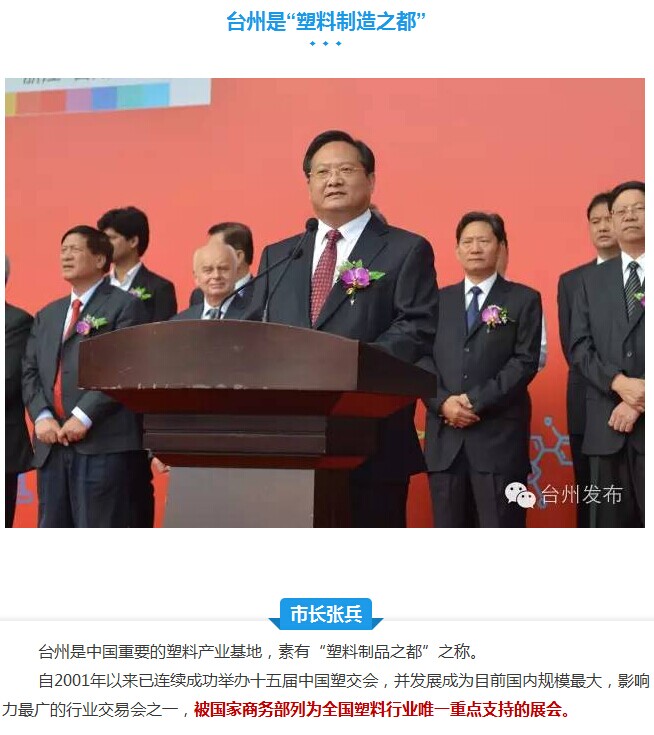 已有人阅读此文 - -10月12日,第十六届中国塑料展销会在台州市国际性展览中心举办。王昌荣、张兵、薛少仙、元茂荣等四套班子领导干部参加开幕会。
