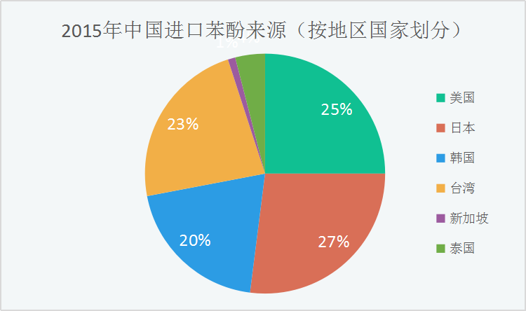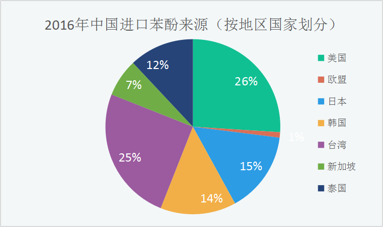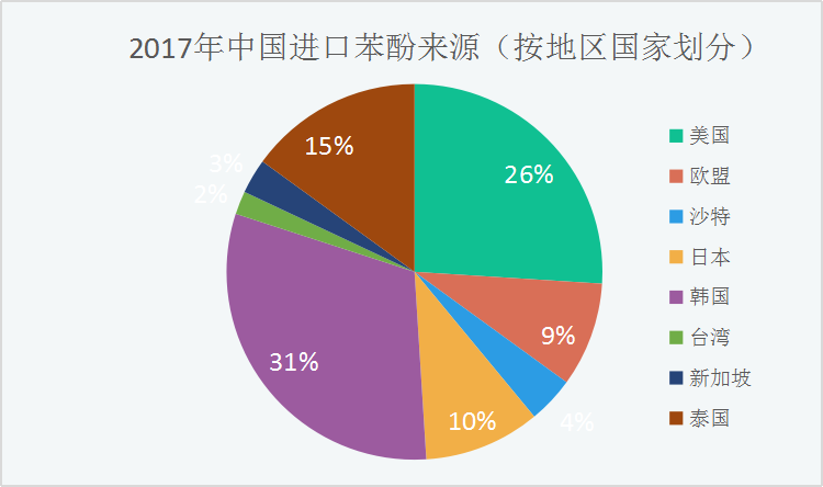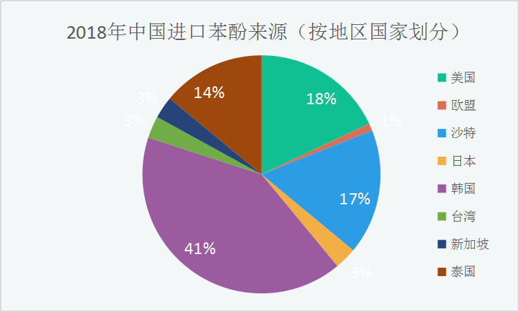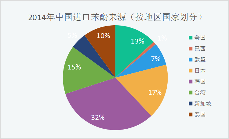 下附2014-2018年中国进口苯酚来源:(按地区国家分)