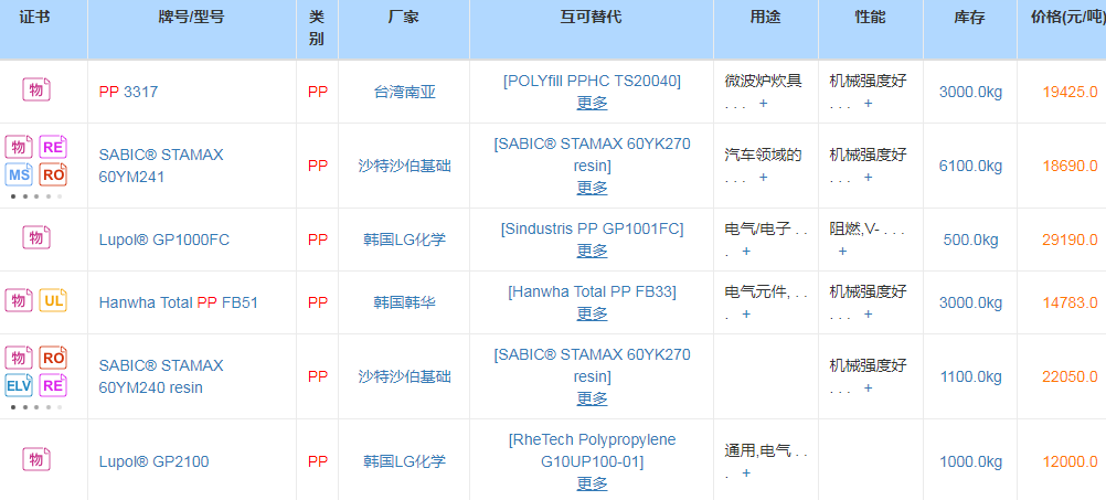 价格方面:国产拉丝/注塑料8750-9300元/吨,国产共聚料8750-10200元/吨,进口共聚料9300-14700元/吨,单丝粉料8700元/吨。