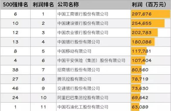 500强榜单中最会挣钱的前10家上市公司除了四大银行、中国移动与平安保险外,腾讯、招商银行、阿里巴巴突出重围,入选其中。