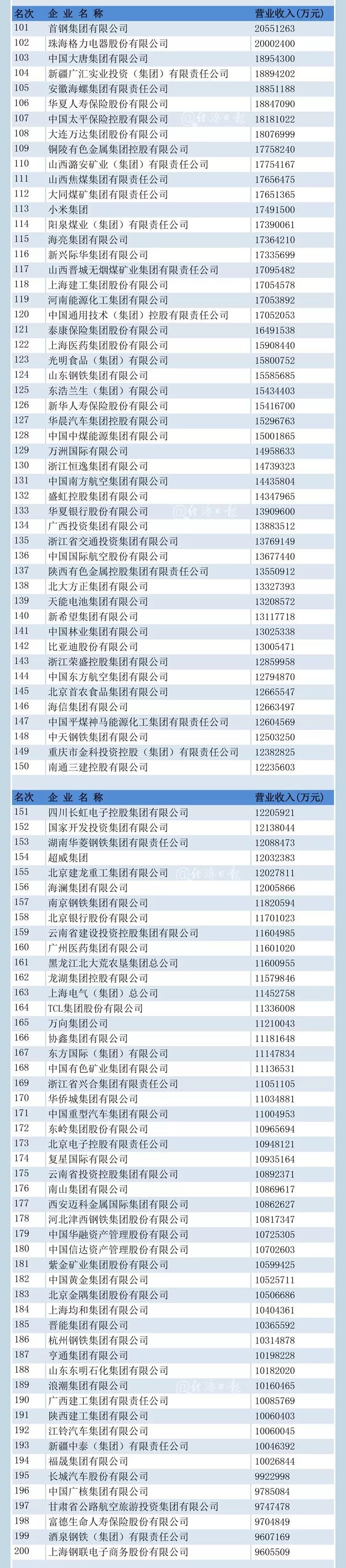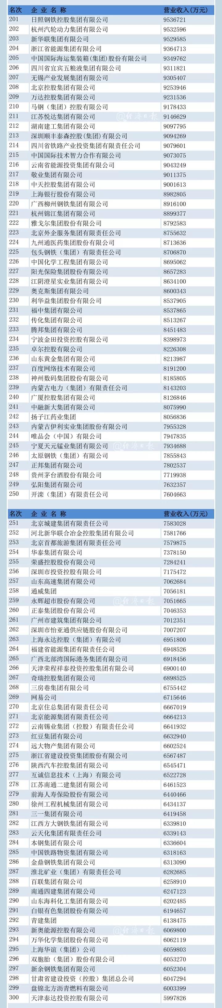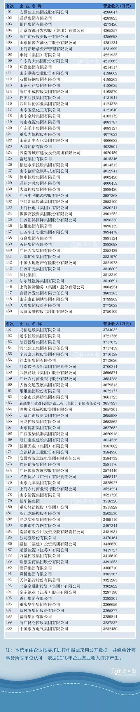 2019中国企业500强榜单涉及76个行业,其中制造业企业入围244家,服务业企业入围173家。194家企业营收超过1000亿元,6家企业超过万亿。