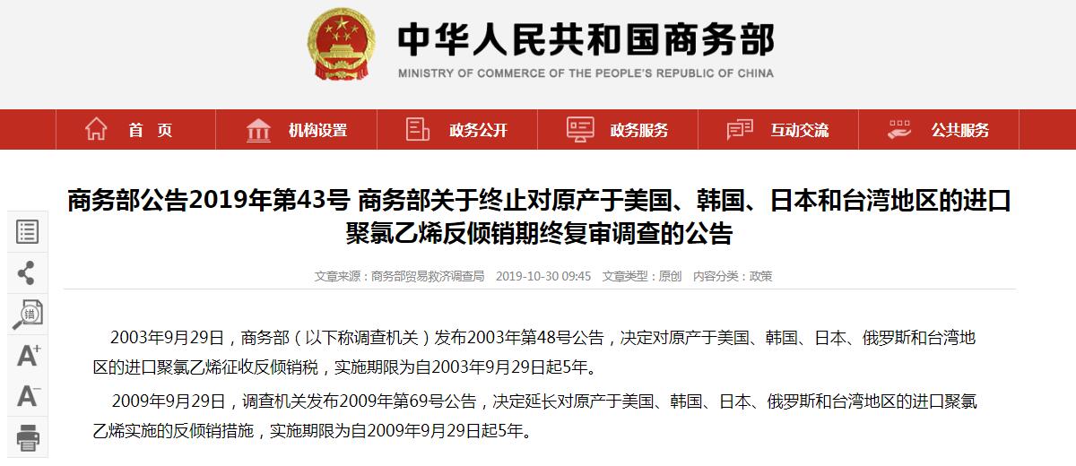 商务部公告!终止对原产美国、韩国、日本台湾出口聚合物反倾销