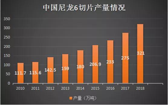 受益于聚合技术进步、原材料己内酰胺供应稳定及下游应用领域需求旺盛等因素,国内尼龙6切片产量稳步增长,据国家统计局和中国化纤工业协会统计数据,2010年我国尼龙6切片产量为111.7万吨,2018年我国尼龙6切片产量为321万吨,同比增长16.7%。预计未来,随着应用领域的不断拓展,我国尼龙6切片产量将继续保持稳步增长。