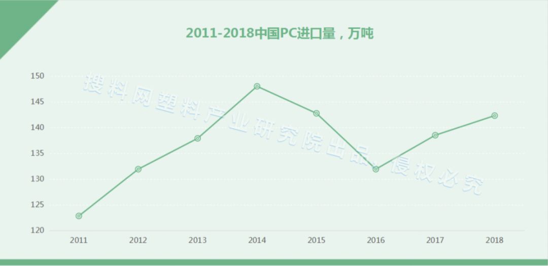 2018年中国的PC进口量为142.3万吨,我们根据国内外公开报道预计当年的聚碳酸酯表观消费量约180万吨。国内2018年投产、能出正常产品的PC产能已经累计125万吨,即便科思创、三菱、帝人的产能50%全部拿来生产改性工程塑料,也有90万吨纯PC的产能。