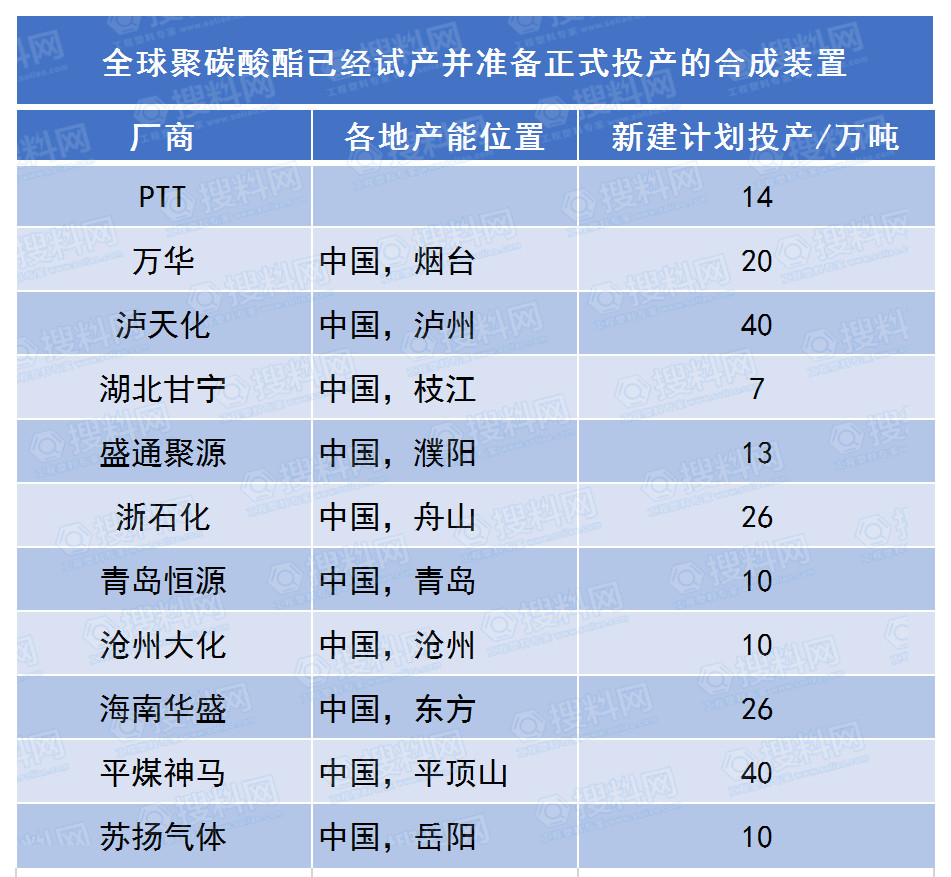 2012年,北京中石化三菱年产6万吨的PC工厂投产;SABIC与中石化在天津年产26万吨PC的工厂开工建设。