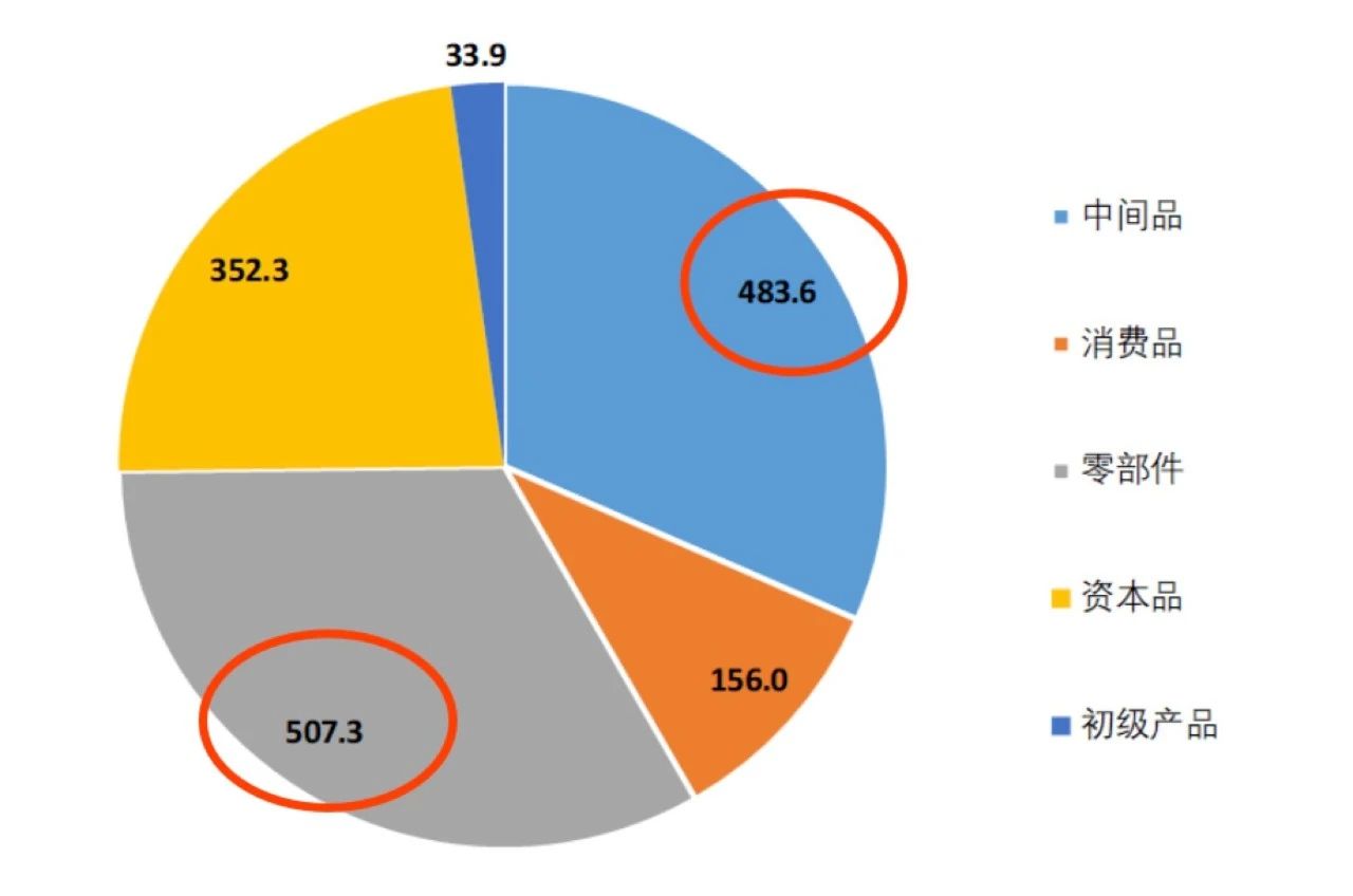 接下来,对占比最大的零部件行业进行二次挖掘,找出可能受冲击最大的细分行业有哪些。