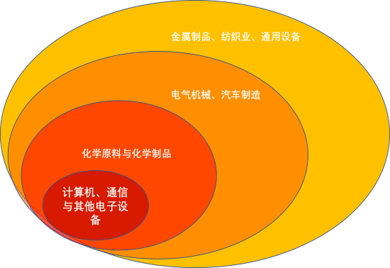 二是高技术制造链条,主要包括电气设备、机械设备以及电子光学设备行业。