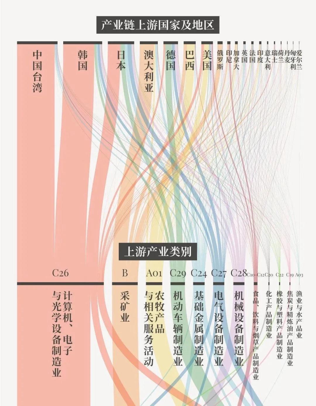 在中国主要产业的上游,日本主要集中在计算机电子光学设备、电气设备、基础金属、橡胶塑料、机械设备、汽车与运输设备行业。