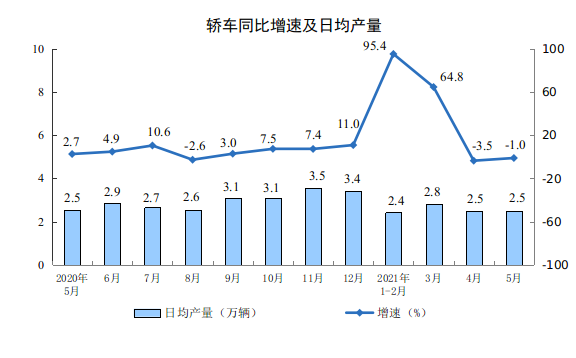 分产品看,5月份,612种产品中有428种产品产量同比增长。钢材12469万吨,同比增长7.9%;水泥24307万吨,下降3.2%;十种有色金属545万吨,增长10.3%;乙烯228万吨,增长23.7%;汽车209.6万辆,下降4.0%,其中,新能源汽车23.7万辆,增长166.3%;发电量6478亿千瓦时,增长7.9%;原油加工量6050万吨,增长4.4%。