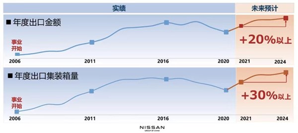 值得注意的是,为满足全球汽车市场对高品质电驱化零部件的需求,支持雷诺-日产-三菱联盟电驱化战略的实施,日产(中国)零部件出口事业部将开启包括EV和e-POWER电池在内的电驱化零部出口的全新业务。计划到2024年电驱化零部件出口额占整体30%,实现出口金额和出货量分别增长20%和30%以上的目标。未来,中国将有望成为日产汽车全球最大的零件采购出口基地。