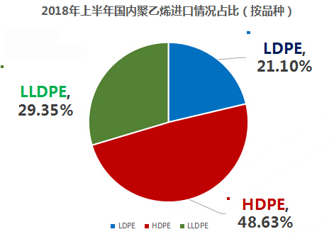据统计,2018上半年中国聚乙烯进口量约为718.8万吨,同比去年上半年增长27.64%,年初,禁塑令与环保税相继实行,不符合环保要求的企业遭到整改与停产。再生PE产量大幅下降,加之五月国内石化装置集中检修,导致上半年聚乙烯进口量大幅增长。