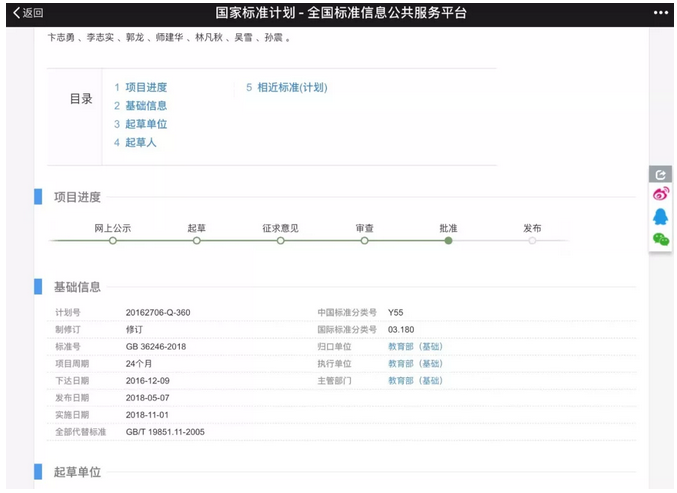 2017年1月- 4月,国家教育部调研组在全国近10个省市进行适用调研。内容包括意见和建议征求研讨,学校场地现场取样抽查。