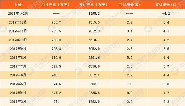 2017-2018年塑料制品产量及增减变动月度数据表