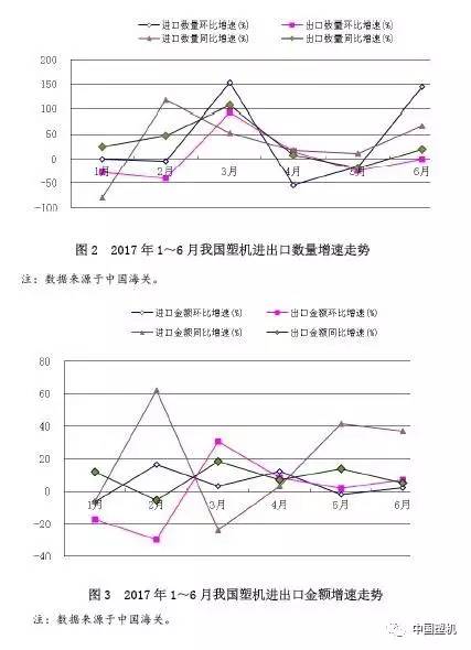 2017上半年度在我国塑机商品进出口详细情况见表2~表5,图2~图6。